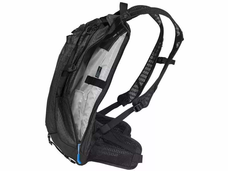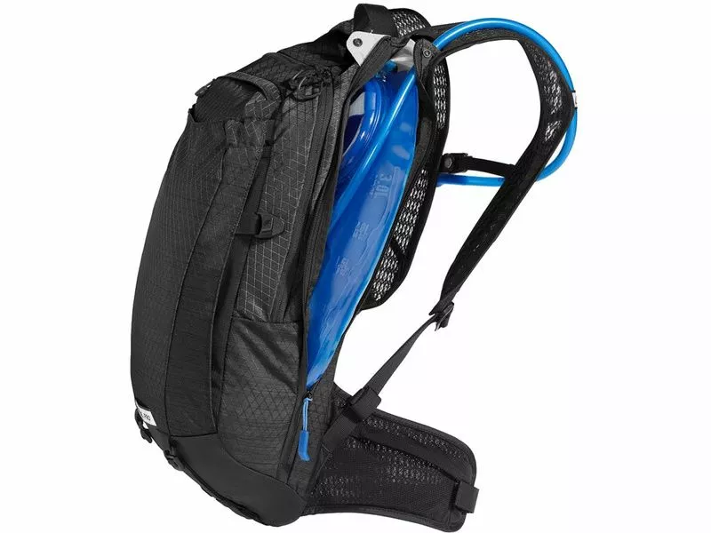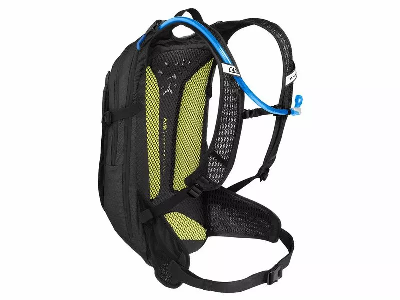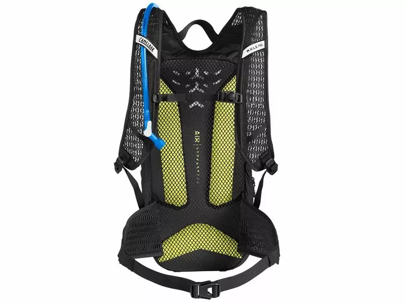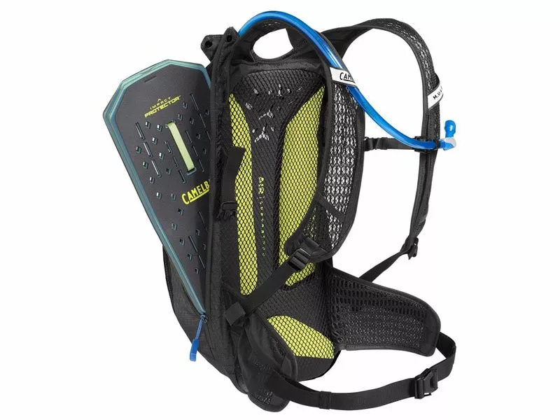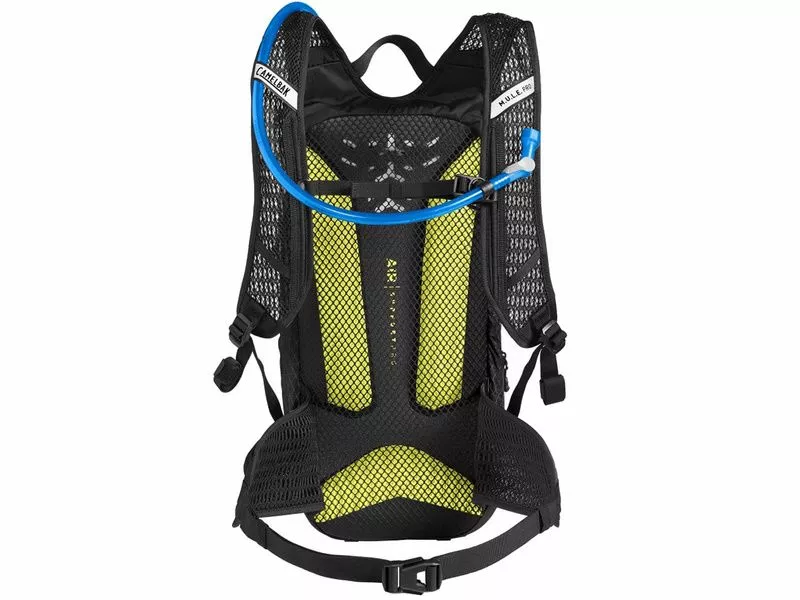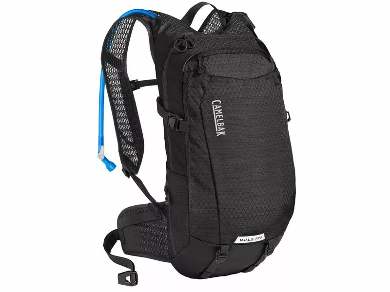 La mochila Camelbak Mule Pro 14 Negra cuenta con una espalda Air Support Pro con tecnología Body Mapping y correas en Mesh 3D que mejoran la comodidad y la respirabilidad. Es compatible con el Impact Protector que se vende separatamente y que mejora el livel de protección. Integra el nuevo depósito Crux 3L de la marca que facilita el llenado y que aumenta el flujo de agua en cada trago. Tiene varios compartimentos para herramientas, barras, llaves, e integra un sistema de ganchos para llevar el casco. El atrapatubos magnético le permite colocar el tubo para beber de vuelta en su sitio fácilmente para que pueda hidratarse sin perder la vista del camino.