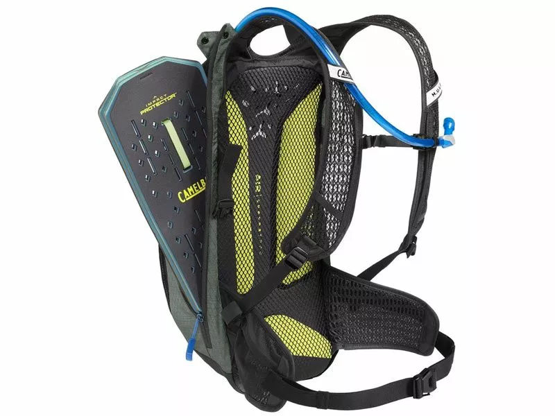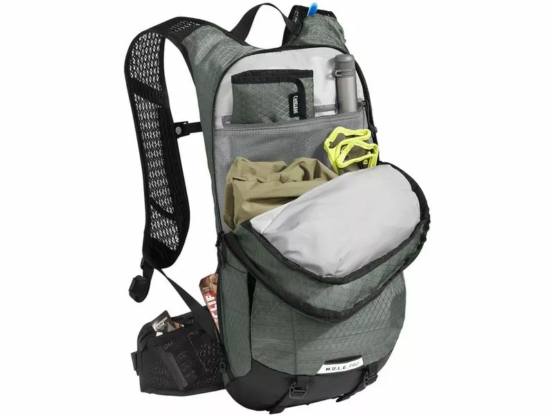 La mochila Camelbak Mule Pro 14 Verde/Negro cuenta con una espalda Air Support Pro con tecnología Body Mapping y correas en Mesh 3D que mejoran la comodidad y la respirabilidad. Es compatible con el Impact Protector que se vende separatamente y que mejora el livel de protección. Integra el nuevo depósito Crux 3L de la marca que facilita el llenado y que aumenta el flujo de agua en cada trago. Tiene varios compartimentos para herramientas, barras, llaves, e integra un sistema de ganchos para llevar el casco. El atrapatubos magnético le permite colocar el tubo para beber de vuelta en su sitio fácilmente para que pueda hidratarse sin perder la vista del camino.
