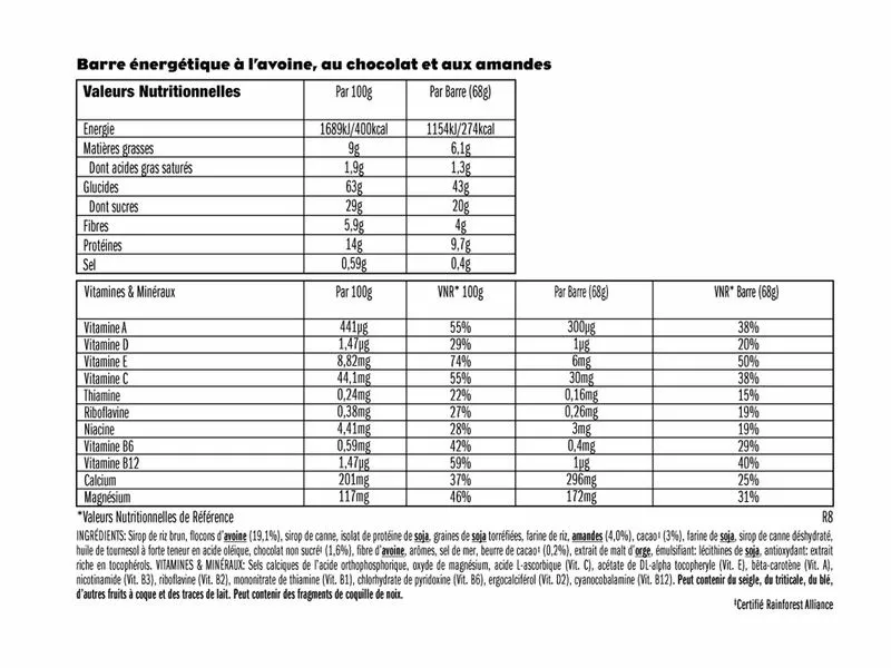 Caja de 12 barritas energeticas de 68 gr sabor chocolate y almandas hechas con ingredientes sanos y buenos con la mejor materia prima y el mejor sabor. Una nutrición diferente para el deportista. Allí donde estés o hagas lo que hagas, estas barritas están hechas sólo para ti y tu aventura