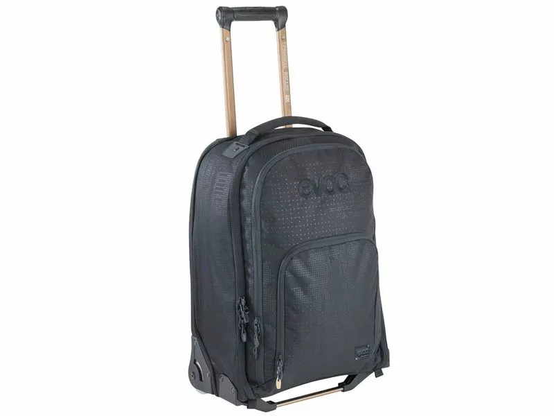 La Evoc Terminal Roller es una bolsa de viaje de 40 litros con mango telescopico y rulinas de monopatín que facilitan su uso en transportes. Cuenta con un compartimento de 40L que incluye un estuche para portatíl hasta 17″