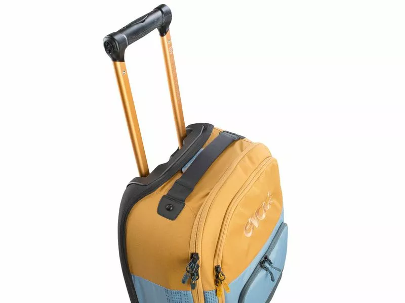 La Evoc Terminal Roller es una bolsa de viaje de 40 litros con mango telescopico y rulinas de monopatín que facilitan su uso en transportes. Cuenta con un compartimento de 40L que incluye un estuche para portatíl hasta 17″
