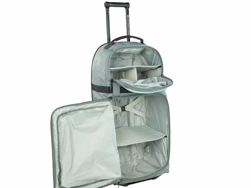 La World Traveller de Evoc es una bolsa de viaje con un contenido de 125 litros , con compartimentos que permiten organizar bien tus ropas de deportes con las otras cosas. Los varios bolsillos y las dos grandes rulinas facilitan el transporte durante tus viajes deportivos.
