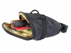 El estuche Evoc Seat Bag es disponible en 2 tallas : S con un volumen de 0.3L o M con un volumen de 0.7L. Se instala gracias a un sistema de hebilla muy conveniente