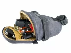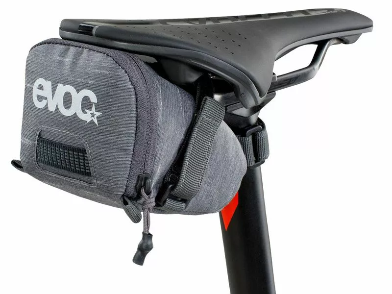 El estuche Evoc Seat Bag Tour es disponible en 2 tallas : M con un volumen de 0.7L o L con un volumen de 1L. Se instala gracias a un sistema de hebilla muy conveniente