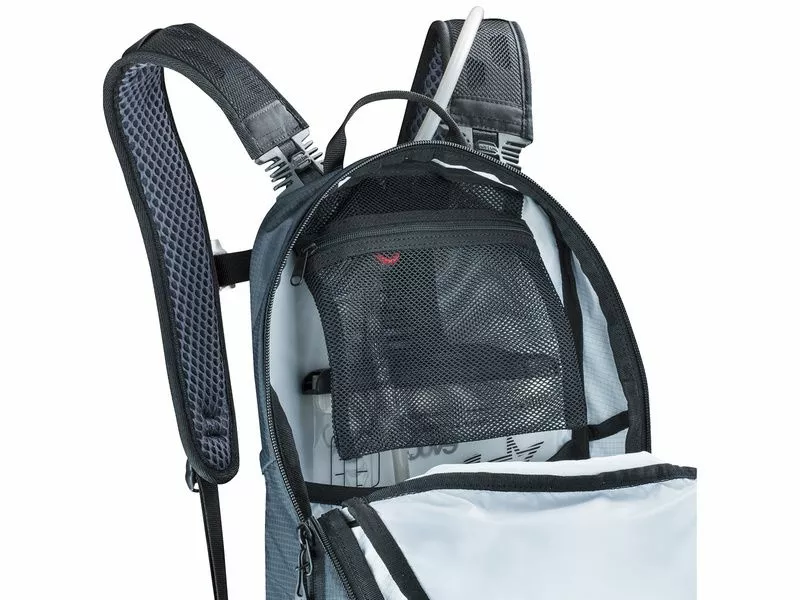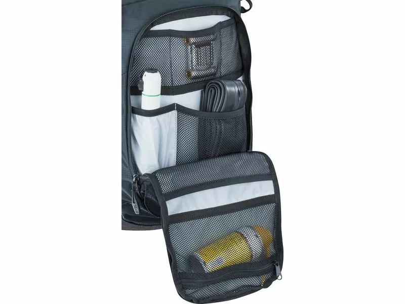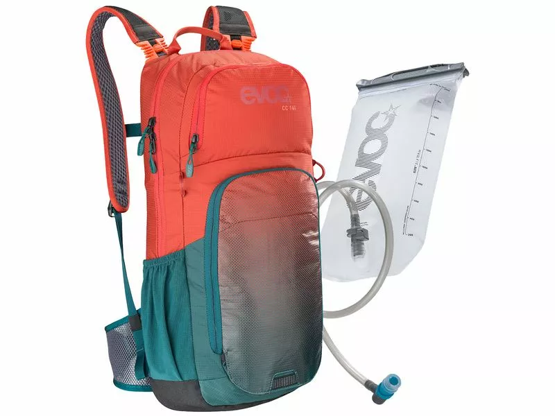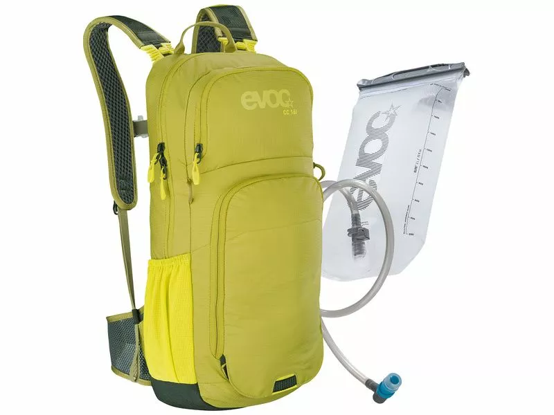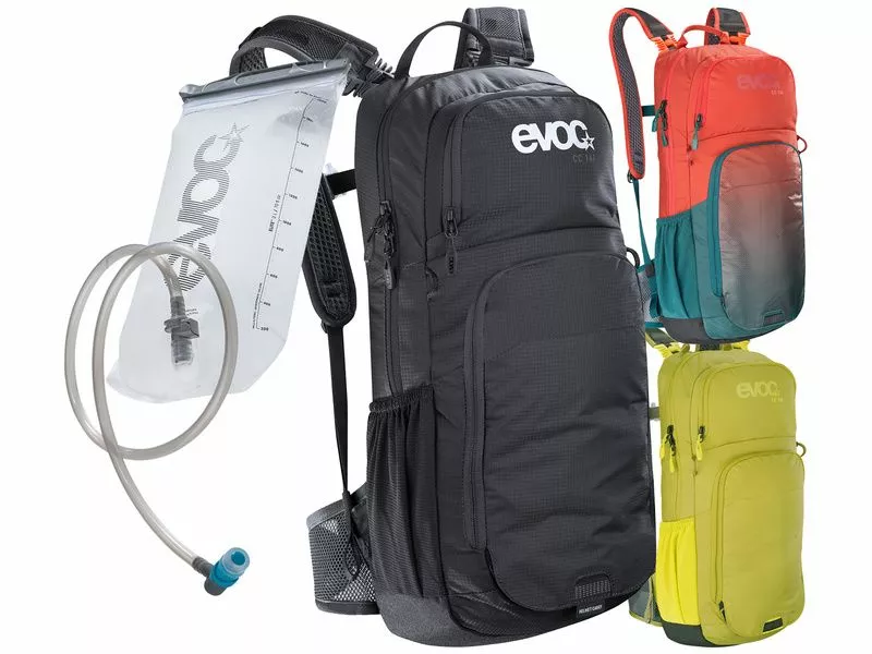 La mochila Evoc CC 16l es la más gorda de la gama CC pero sus medidas son casi las mismas que el 10 litros. La unica diferencía es el epesor que pasa de 9 a 14 cm. Todo lo que quiere en el CC 10l está aquí con 2 pequeños bolsillos de Mesh más. Entregado con el deposito Evoc Hidration Bladder de 2 litros.