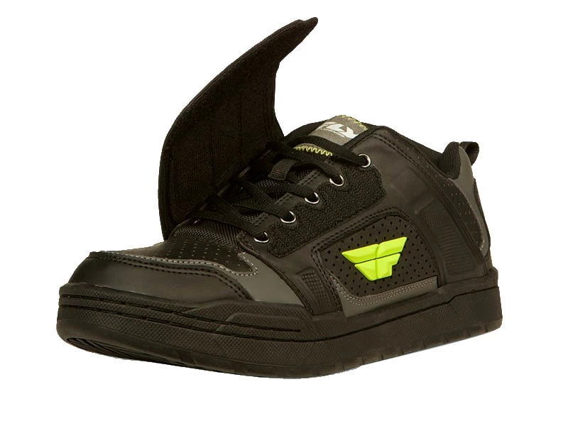 Fly Racing muy conocida por su gama de productos dedicados a la moto entra en el mercado del cicilismo con una amplia oferta. Las zapatillas Transfer que forman parte de esta linea, son compatibles con pedales de plataforma y automaticos gracias al sistema SPD integrado. El diseño asimetrico proporciona buena protección del tobillo interno, el cierre por cordones beneficia de un velcro ancho que protege de la penetración del barro, y la suela intermediaria rigida favorece la transferencia de energia.