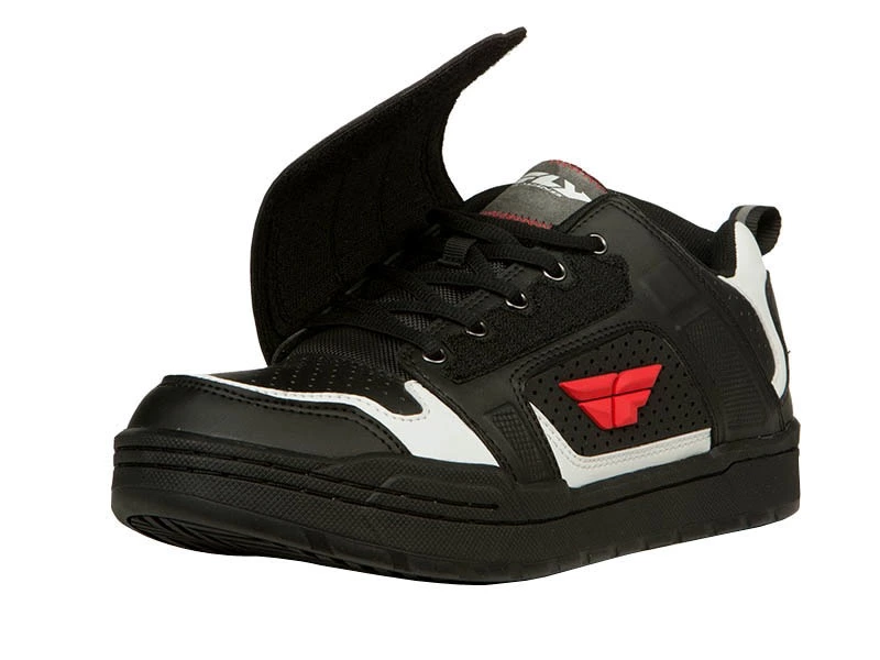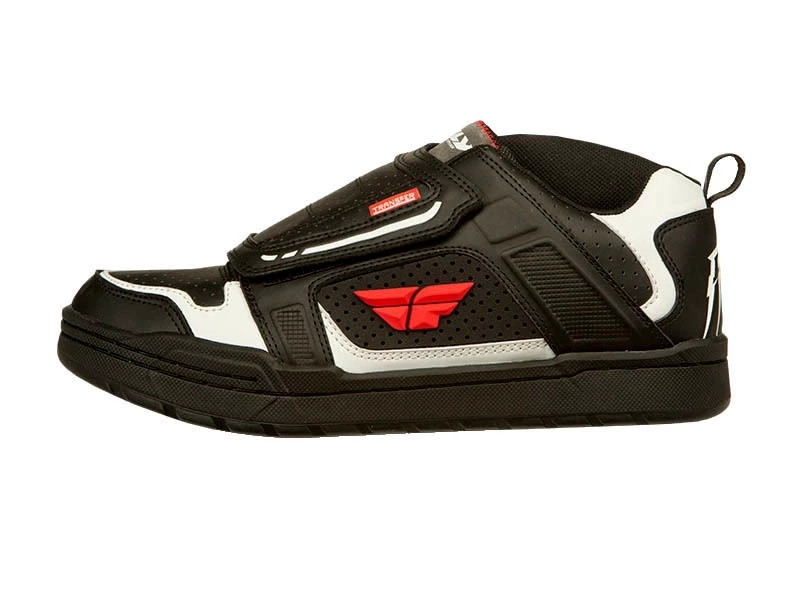 Fly Racing muy conocida por su gama de productos dedicados a la moto entra en el mercado del cicilismo con una amplia oferta. Las zapatillas Transfer que forman parte de esta linea, son compatibles con pedales de plataforma y automaticos gracias al sistema SPD integrado. El diseño asimetrico proporciona buena protección del tobillo interno, el cierre por cordones beneficia de un velcro ancho que protege de la penetración del barro, y la suela intermediaria rigida favorece la transferencia de energia.
