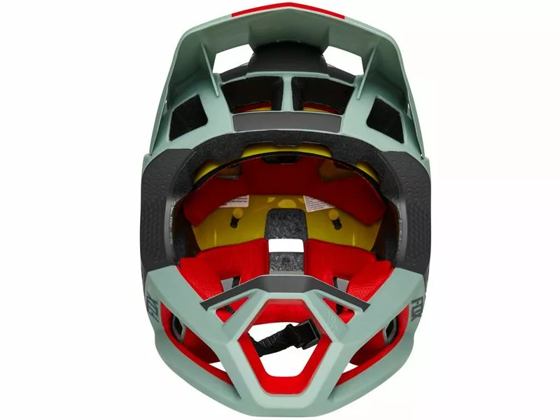 El Proframe es el casco integral Blocked Eucalyptus más ligero y ventilado que Fox haya creado jamás. Ofreciendo el aireado de un casco Enduro gracias a los 24 canales de ventilación y la protección certificada de un casco DH gracias al uso de las tecnologías MIPS y Varizorb, el Proframe combina polivalencia y seguridad para todas las prácticas. La comodidad no ha sido olvidada con las almohadillas transpirables con propiedades antimicrobianas, un sistema de cierre mañetico muy facil de manipular y muy seguro.