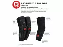 Las coderas G-Form Pro Rugged reemplazan la linea Elite y se dedican ahora mucho más a la práctica del MTB. Siguen incorporando la tecnología Smart Flex con XRD que es un material flexible que se vuelve dura al impacto pero integra ahora varias mejoras . El material externo llamado Armortex es ahora más flexible y más resistente a la abrasión. Las bandas de silicona situadas en la parte inferior y superior de la codera han sido alargadas. La parte trasera de la codera esta hecha con Mesh muy transpirable y la parte interna cuenta con una espuma suave muy agradable