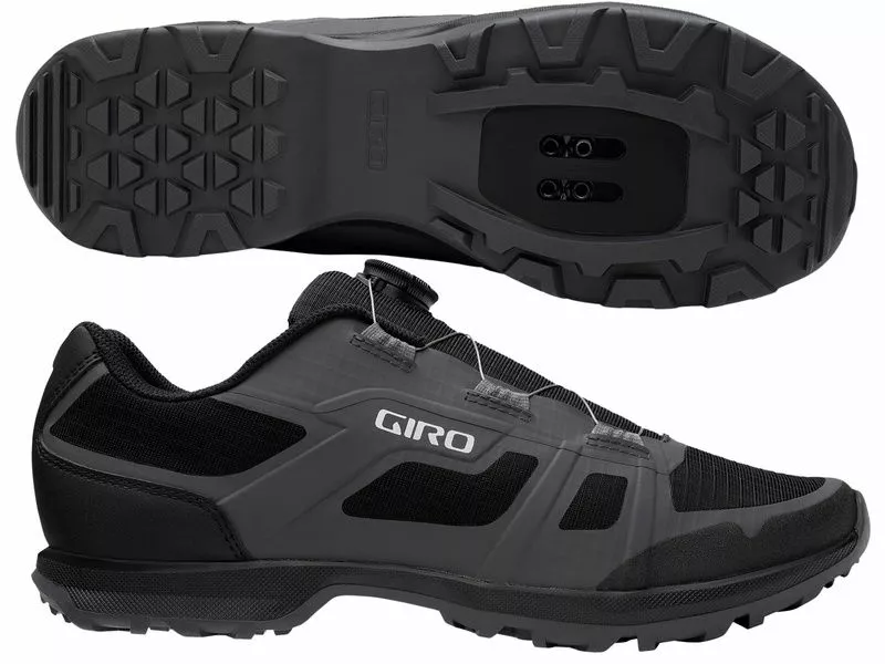 Las zapatillas Giro Gauge Boa combinan las caracteristicas de una zapatilla de trail running con ajuste micrometrico BOA y las caracteristicas de una zapatillas de ciclismo con sistema SPD. Cuentan con una suela externa con taqueado que ofrece buen agarre en todo tipo de terreno y una parte superior hecha con fibra sintetica y mesh que favorecen la transpiración. Los dedos y el talón están reforzados contra la abrasión y los impactos.