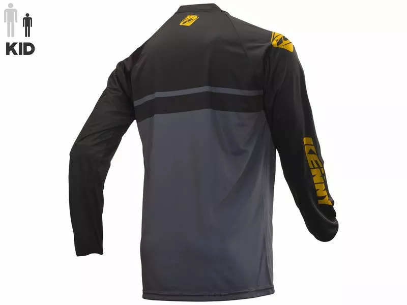 El maillot Kenny Elite niño negro y dorado 2019 está principalmente desarollado para el BMX y el descenso. Su corte está ajustado y el tejido 100% Poliéster es combinado con fragmentos de licra para má comodidad.
