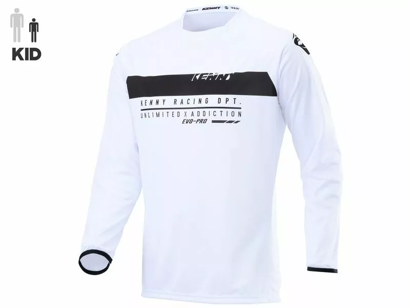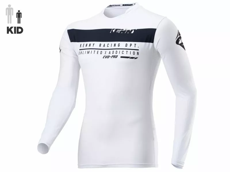El maillot Kenny Evo Pro Niño aqui en color Blanco es disponible en versión Slim Fit (ajustado) o en versión Compression Fit (ropa de compresión como una segunda piel). Esta fabricado con mesh extensible para mayor comodidad y respirabilidad.
