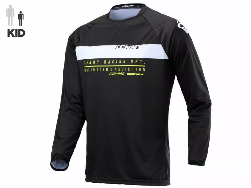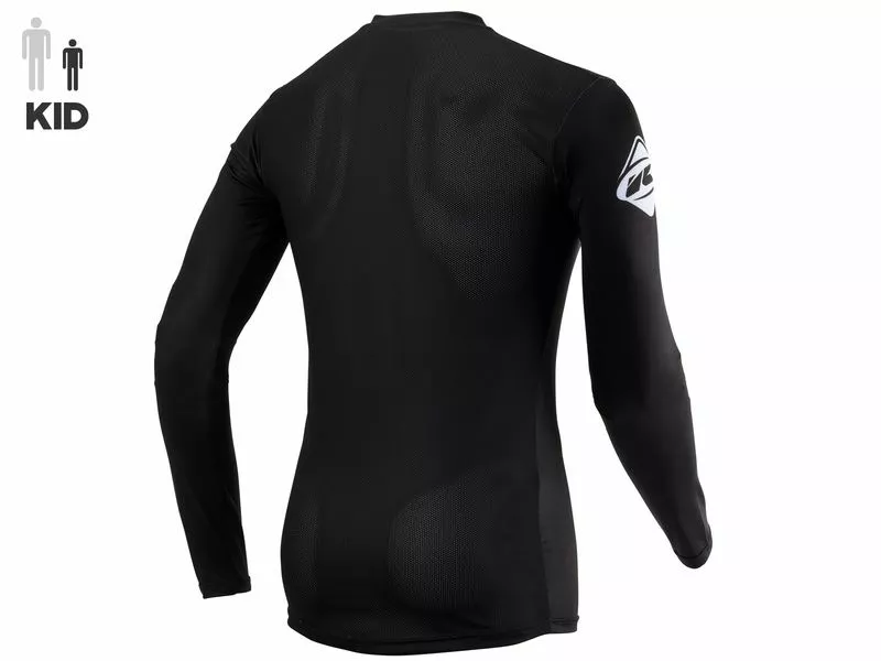 El maillot Kenny Evo Pro Niño aqui en color Negro es disponible en versión Slim Fit (ajustado) o en versión Compression Fit (ropa de compresión como una segunda piel). Esta fabricado con mesh extensible para mayor comodidad y respirabilidad.