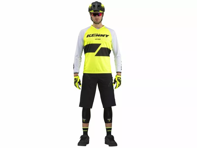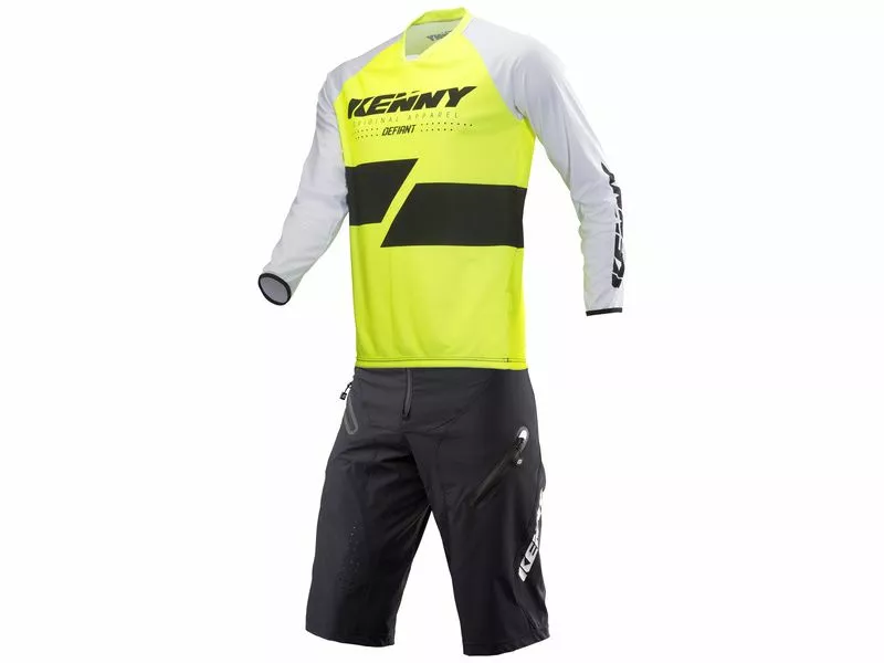 El traje Kenny Defiant 2019 negro y amarillo fluo se compone del maillot Defiant amarillo fluo y del pantalón corto Defiant negro. Ligero y respirante este traje es perfecto para un uso Enduro y All-Mountain y también sus largas salidas.