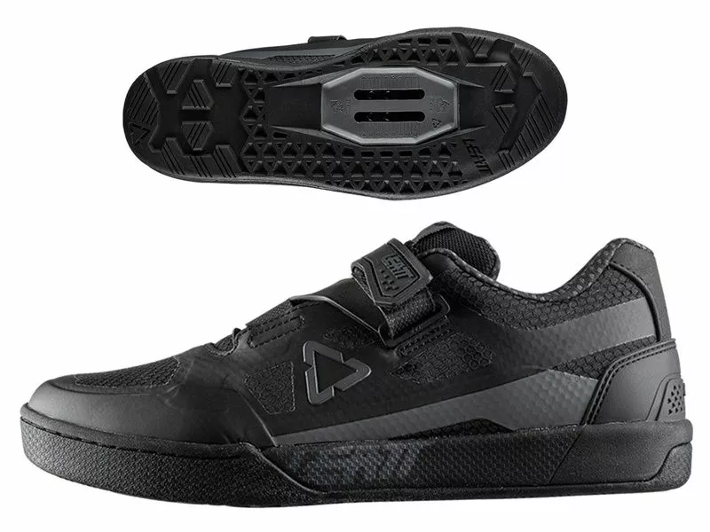 Las zapatillas Leatt 5.0 Clip cuentan con una interfaz SPD de 25 mm que ofrece un alto livel de ajustabilidad y grande estabilidad. El cierre se hace por un sistema de cordones automaticos llamado Speed Lace que está reforzado por un sistema de velcro cruzado La parte superior de la zapatilla esta hecho con una triple capa resistente al agua y transpirable gracias a su norma 10.000/10.000. La media suela de las 5.0 clip es rígida con flexión unidireccional para controlar las torsiones y facilitar el camino. El segreto de esta zapatilla se situa en la suela externa y su mezclo de goma que utilizan un dibujo especifico para evacuar el barro y optimizar el agarre