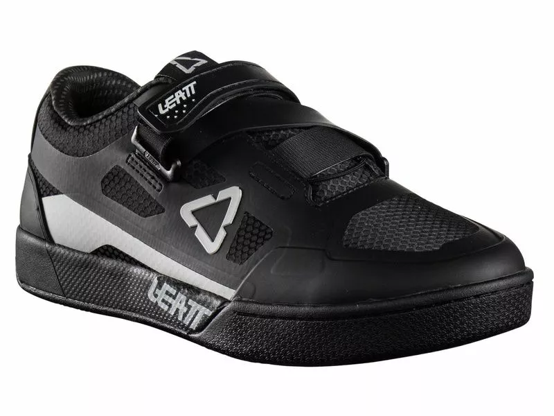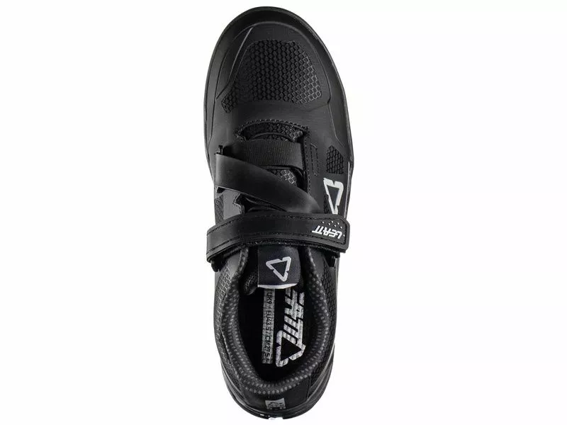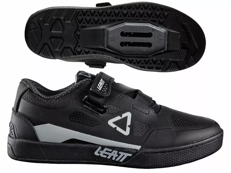 Las zapatillas Leatt 5.0 Clip cuentan con una interfaz SPD de 25 mm que ofrece un alto livel de ajustabilidad y grande estabilidad. El cierre se hace por un sistema de cordones automaticos llamado Speed Lace que está reforzado por un sistema de velcro cruzado La parte superior de la zapatilla esta hecho con una triple capa resistente al agua y transpirable gracias a su norma 10.000/10.000. La media suela de las 5.0 clip es rígida con flexión unidireccional para controlar las torsiones y facilitar el camino. El segreto de esta zapatilla se situa en la suela externa y su mezclo de goma que utilizan un dibujo especifico para evacuar el barro y optimizar el agarre