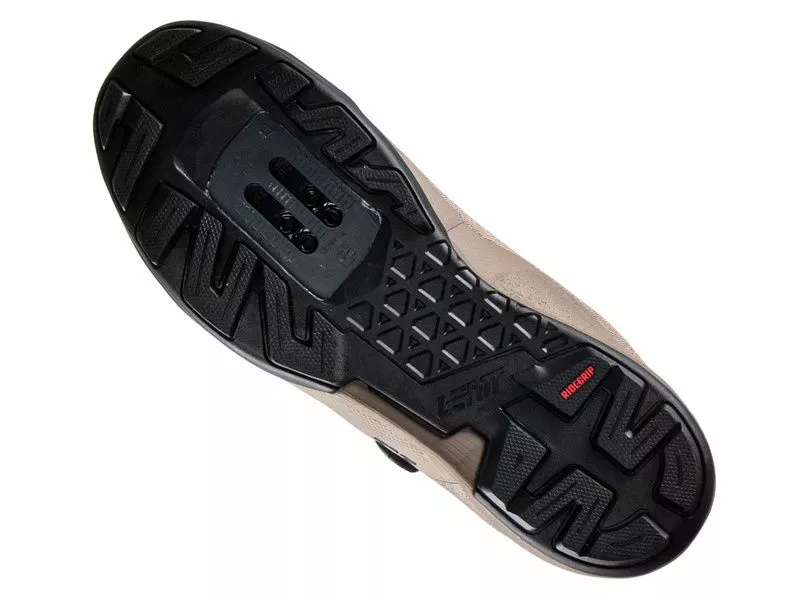 Las zapatillas Leatt 6.0 Clip se dedican a la práctica del Trail, All Mountain y Enduro. Compatible con los pedales automaticos, las 6.0 cuentan con un ajuste micrometrico ATOP muy preciso y comodo que se puede utilizar con una sola mano y que ofrece un control optimo en la bicicleta. La area SPD donde se fijan las calas ofrece un alto livel de ajustabilidad y permite posicionar el pie donde lo quiere , según el tipo de uso : adelante para más potencia y átras para más control y estabilidad. La parte superior de la zapatilla esta hecha con una capa resistente y transpirable y es perfecta un uso desde primavera hasta otoño. La suela externa RideGrip ofrece buen agarre y el taqueado permite caminar en terrenos deslizantes sin problemas. Las zapatillas 6.0 Clip cuentan también con varios refuerzos en las partes sensillas.