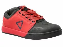 Las zapatillas Flat 3.0 Rojo Chilli han sido pensadas por Leatt para los ciclistas que utilizan pedales de plataforma. Su lengueta esta acolchada , la parte interna en contacto con la biela protege el tobillo interno y las extremidades integran refuerzos rigidos para proteger el talón y los dedos. La parte superior de la zapatilla esta microperforada para optimizar la evacuación del sudor y la ventilación interna. La media suela de las Flat 3.0 es rígida con flexión unidireccional para controlar las torsiones y facilitar el camino. El segreto de esta zapatilla se situa en la suela externa y su mezclo de goma que utilizan un dibujo especifico para evacuar el barro y optimizar el agarre