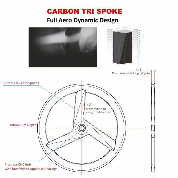 TRI spokes, HI.TG. Carbono multilayer monocoque