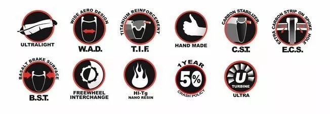 Carbono High modulus fiber con High TG Epoxy, Soporte titanio T.I.F, Banda de frenada basalto B.S.T.