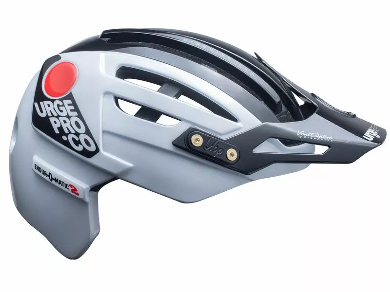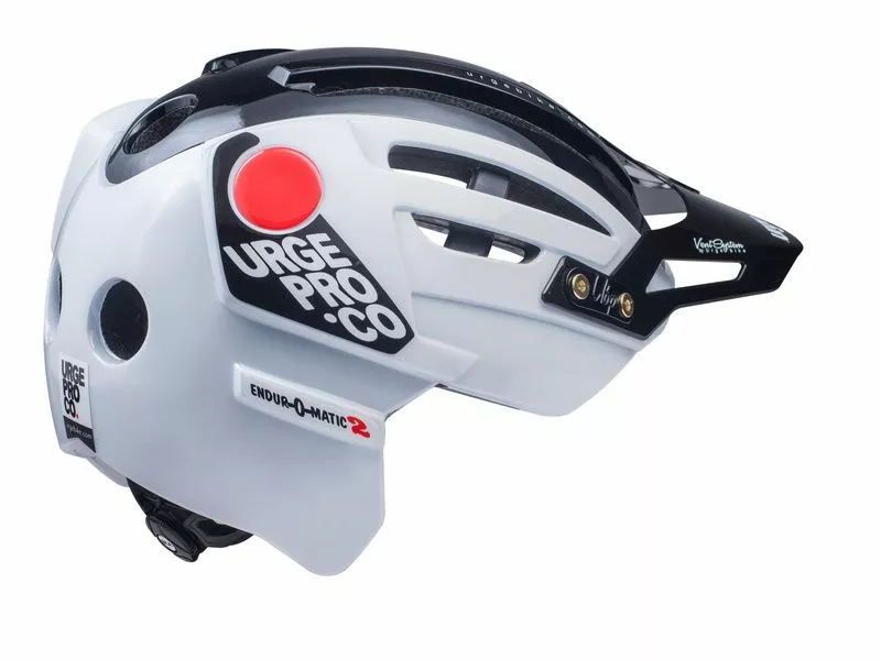 La versión RH del casco Urge Endur-o-matic 2 adopta una visera rigida. Aqui presentado en color blanco y negro, este casco es la nueva edición del casco estrella de la marca para la práctica del enduro al cual aporta varias mejoras como un ajuste occipital con sistema BOA, una nueva cascara EPS mas ventilada y un nuevo diseño que aumenta el livel de protección y el rescpeto el medio ambiente.